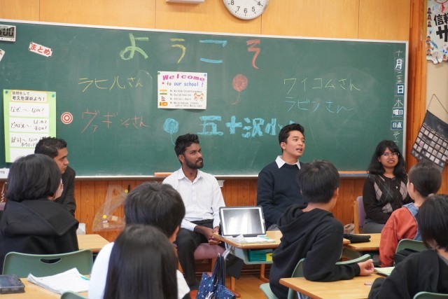 五十沢小学校では、市内の国際大学に通う留学生を招いて、国際交流会を行っています。