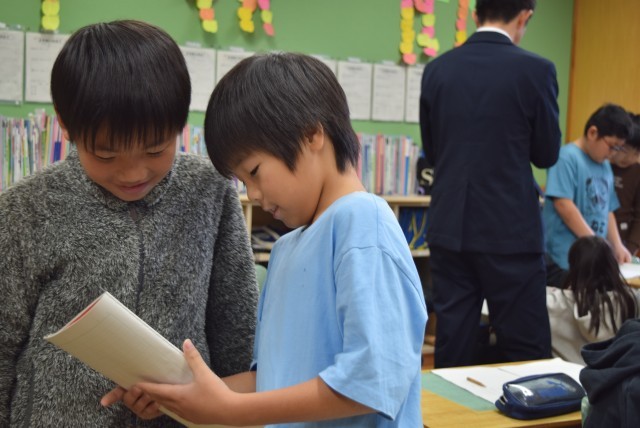 参観者からは「GさんがYさんの考えを聞き、自分になかった考えを知って、なるほどと納得したそうです。45分の中でGさんが変化していく様子があり楽しく参観しました。また、その変化を促すために、自分の立場を視覚化していることが効果的でした。学びたい意欲意を感じました。」という感想をいただきました。