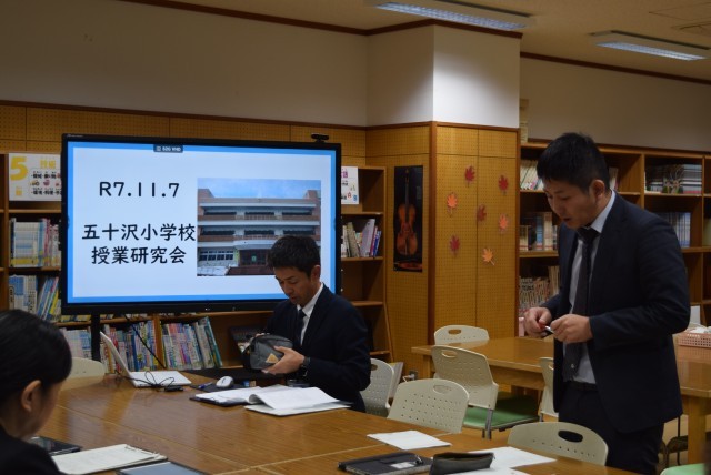 午前で終わった全国へき地教育研究大会ですが、五十沢小学校教職員はまだまだ研修です。指導者の先生方と昼食をとり、午後からは本時の授業について、これまで指導をいただいていた指導者から指導講評をいただきました。
