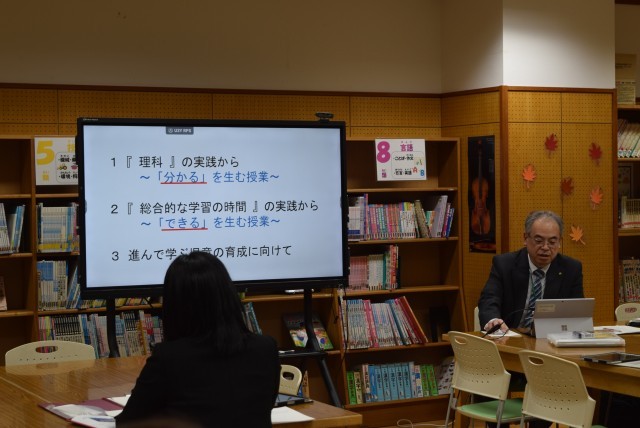 当校の取組全体が、研究テーマに対してどうであったか、授業づくりや子どもの姿から、どう具現化されていたか、具体的にご指導をいただきました。