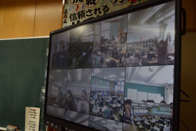 八海中学校区で取り組む「八海健康Week」で、中学校区全体で取組達成率がよかった学級が表彰されました。オンラインで全学級をつなぎ、八海中学校の生徒が進行を務め、表彰式が行われました。