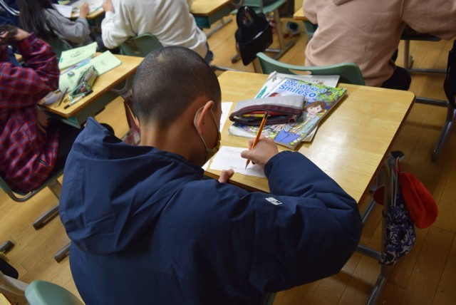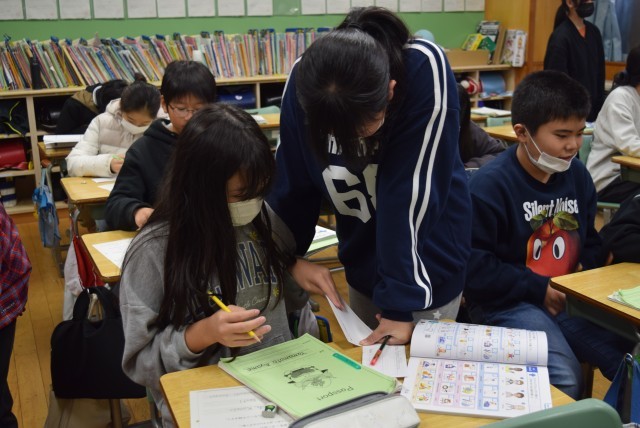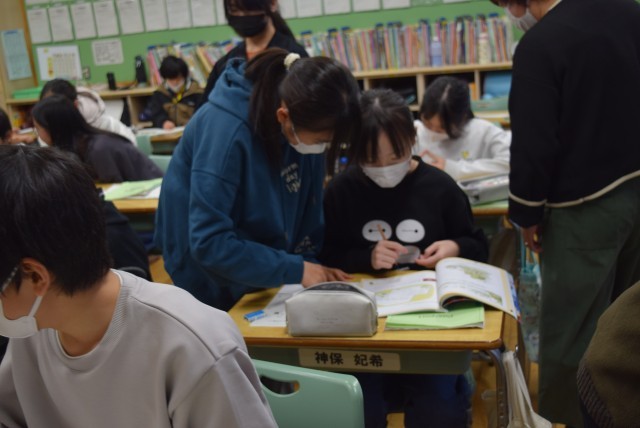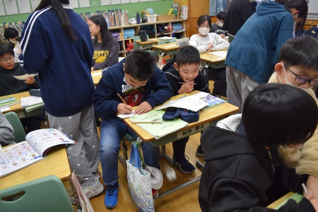 6年生は、英語を書く活動に取り組みました。学習内容に「書くこと」が入っており、少しずつ、繰り返し、取り組んできていました。いつも、楽しいゴールの活動を設定して学習してきたので、書くことにも自然に取り組み、慣れてきています。自分の表したい言葉を調べたり確かめたりしながら、思いを込めてメッセージを書きました。