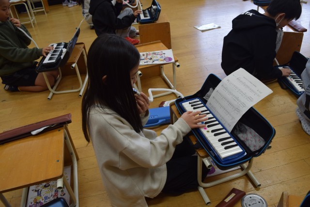4年生が、鼓笛新体制の一員として、演奏の練習をしています。音楽の時間を使ったり休み時間や朝活動を使ったりしてこつこつ練習してきました。パートに分かれて合奏できるところまで上達しています。5年生と一緒に合奏できるところまでもう少しです。合奏できる日が楽しみです。