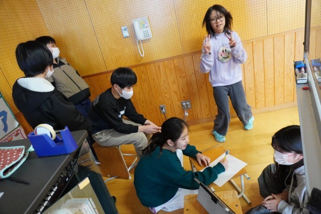 英語を使ってグループで発表するための準備をしています。内容や文章、動作も入れた発表にしようとグループで相談しています。これまで勉強してきた英語表現のどれが使えるか、どうやって話したらたわかりやすいか、主体的に関わりながら進めました。どんな発表になるのか楽しみです。