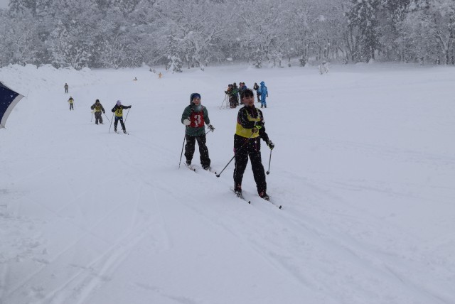 南魚沼市親善クロスカントリースキー大会の前に、会場である欠之上クロスカントリーコースを使って、高学年による校内の記録会を行いました。大雪の山を越え、少し落ち着いた降雪の中、本番により近づけた形でレースを経験しました。グラウンドでの練習や技術別の練習をし、コースに出るのは2~3回目でした。緊張したり焦ったりする気持ちを経験することも大切です。本番を意識し今の力を発揮できたようです。何より、寒い中、平日にもかかわらず、多くの保護者が応援に駆けつけてくださいました。応援の声がきっと力になったことでしょう。