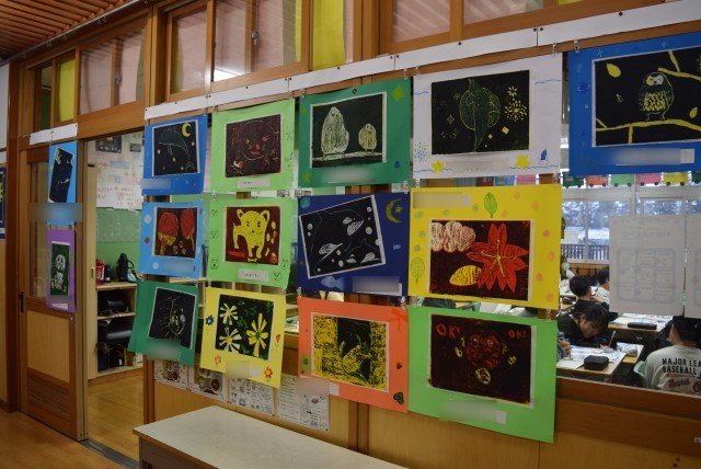 5,6年生は図工で、多色版画に取り組みました。題材は違いますが、完成のイメージを持ちながら堀りと色づけをして重ねていきます。最後に黒で刷ったときにイメージどおりにできたときには、感動です。また、イメージどおりではなくても、重なりの面白さを感じることができます。