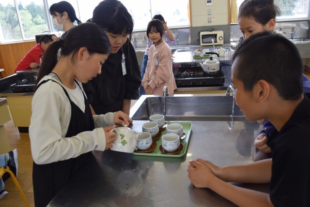 5年生になって家庭科の学習が始まりました。はじめの実習は、「お茶のいれ方」です。