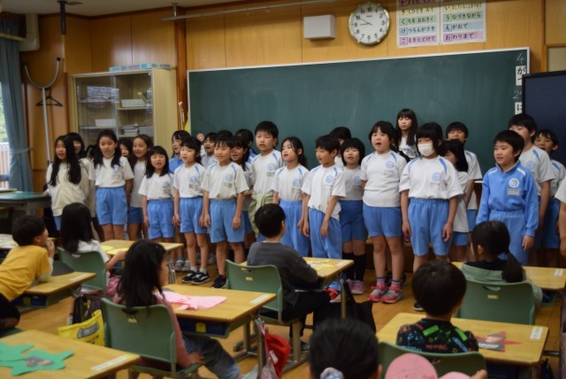 1年生は、とても嬉しそう。照れる子やカードが嬉しくてじっくり眺める子など、とても温かい雰囲気でした。