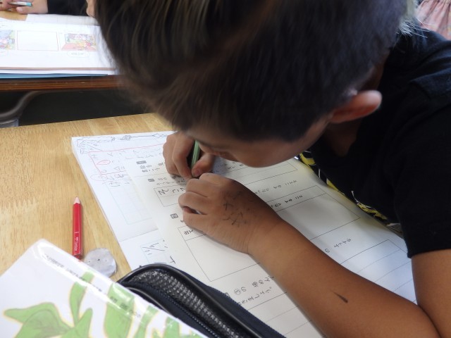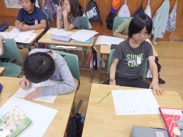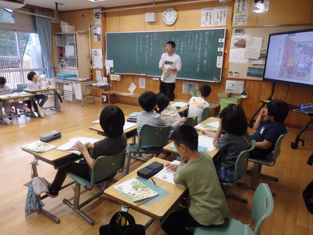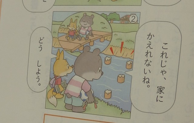 10/9 このあとどうなる? 公開日 2024/10/09 更新日 2024/10/09 教育活動 2年生の5時間目は国語の授業でした。「絵を見てお話を作ろう」という学習です。写真1,2枚目にあるように「キツネとクマが川の向こうに遊びに行きました。帰ろうとしたら橋が壊れて渡れません・・・」この後の3コマ目のお話を考えました。「泳いで渡る」「近くを通った大工さんが橋を作ってくれた」「地図で別な帰り道を調べた」などいろいろなストーリーを考えていました。 +5 いいね(0)