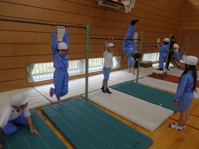 11/20 できたー! 公開日 2024/11/20 更新日 2024/11/20 教育活動 1年1組の4時間目は体育の授業でした。鉄棒の練習です。「こうもり」や「だるまさん」「おさるさん」の技をしたり、逆上がりの練習をしたりしました。補助具なしで逆上がりに挑戦して、「できたー!」と担任の先生と一緒に喜ぶ姿がありました。 +6 いいね(0)