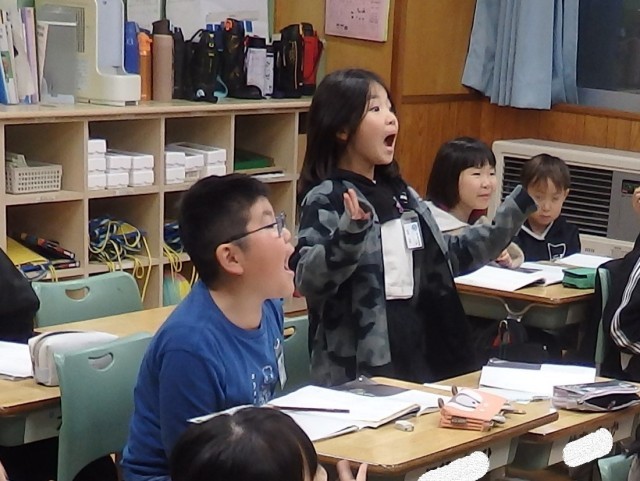 11/29 「じさまぁっ!」と「じさまっ!」 公開日 2024/11/29 更新日 2024/11/29 教育活動 3年生の1時間目は国語の授業でした。「モチモチの木」の学習です。1枚目の写真はどんな場面だと思いますか?物語の中で出てくる「じさまぁっ!」と「じさまっ!」を表現しているところです。まずは同じ段落で出てくる2つのセリフの前後を読んで、主人公、豆太の気持ちを考えました。そして、主人公の気持ちをセリフに込めて表現しました。かなり気持ちがこもっていますね。 +5 いいね(0)
