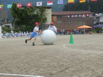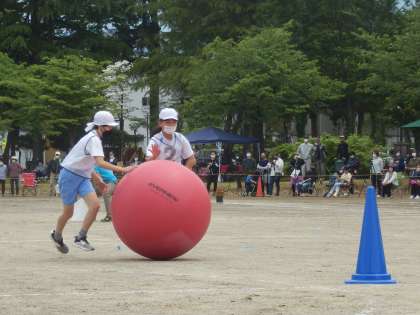 5,6年生の大玉運びは熱戦でした。2回線で勝負か決まらず、3回戦となりました。