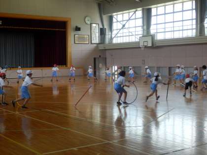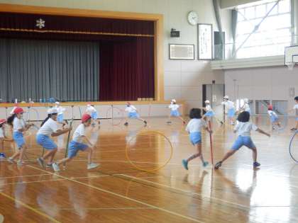 6/17 心を一つに 公開日 2022/06/17 更新日 2022/06/17 教育活動 4年生は体育の授業でした。1人1個ずつフラフープか棒を立たせておき、「せーの!」で倒れる前に隣の人のフラフープか棒のところへ移動します。成功できたかな? いいね(0)