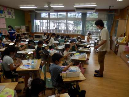 6/21 タマゴ 公開日 2022/06/21 更新日 2022/06/21 教育活動 2年生の5時間目はオリジナルの形に切り取ったタマゴにクレヨンと絵の具で色を塗っていました。色鮮やかで素敵なタマゴ達です。 いいね(0)