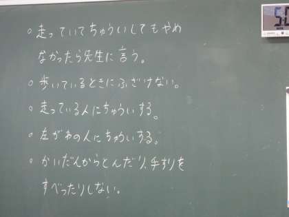 7/5 廊下・階段は右側を歩こう 公開日 2022/07/05 更新日 2022/07/05 教育活動 3年生の1時間目は道徳の授業でした。7月の生活目標「廊下・階段は右側を歩こう」に対してのクラスのめあてを話し合っていました。発表する人の立つ位置や聞く人の体の向きがとてもいいです。 いいね(0)