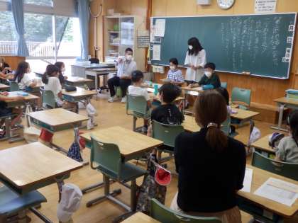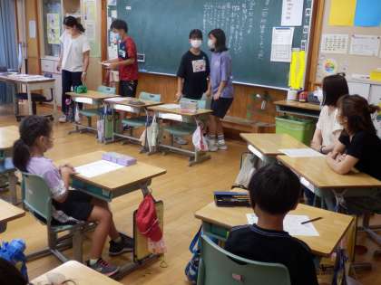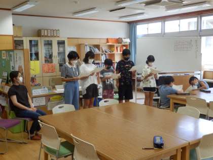 2時間目に地域子ども会を行いました。地区ごとに分かれて、1学期の登下校の反省を話し合ったり、夏休みの生活のきまりを確認したりしました。