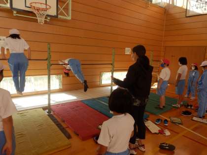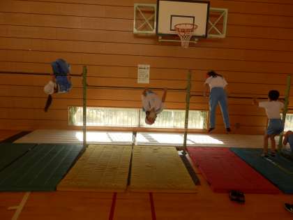 11/11 プレルボール? 公開日 2022/11/11 更新日 2022/11/11 教育活動 4年生は体育の授業でした。クラスを半分に分け、半分の子は鉄棒の技のテスト、もう片方の子はプレルボールを行っていました。プレルボール?初めて聞く名前ですが、どうやらワンバウンド・ソフトバレーボールといった感じでしょうか。 いいね(0)