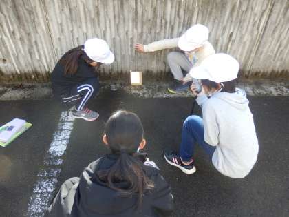 3年生は理科の授業でした。鏡で日光を反射させて、光を温度計に当てると温度はどうなるのか、ストップウォッチで時間を計りながら実験をしていました。