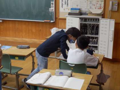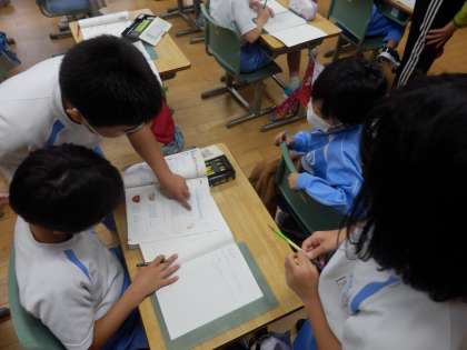 11/15 2.4dLは0.1dLのいくつ分? 公開日 2022/11/15 更新日 2022/11/15 教育活動 3年生の1時間目は算数の授業でした。「2.4dLは0.1dLのいくつ分か」「はしたはどれくらいか」という問いに取り組んでいました。休んでいた友達や困っている友達に教えてあげている姿がたくさんありました。「はしたって何?」と子どもに聞いたら丁寧に説明してくれました。 いいね(0)