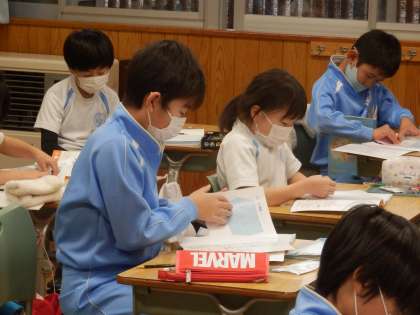 12/13 三角形の学習 公開日 2022/12/13 更新日 2022/12/13 教育活動 3年生は算数の授業でした。二等辺三角形や正三角形の学習をした後、次の時間から使う、教科書の最後にある模型を切り取っていました。ミシン目に沿ってなかなか切れず、破けてしまうなど苦労していました。 いいね(0)