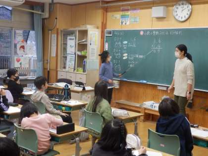 12/13 少数かける2桁の整数は? 公開日 2022/12/13 更新日 2022/12/13 教育活動 4年生の5時間目は算数の授業でした。少数かける2桁の整数の計算はどうすればよいか考えを出し合い、問題に取り組んでいました。小数点をどこに付けるかが問題ですね。 いいね(0)
