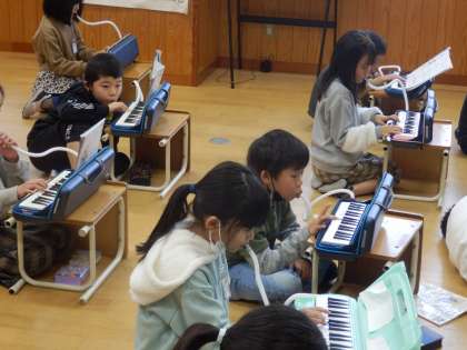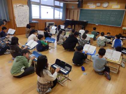 12/14 山のポルカ 公開日 2022/12/14 更新日 2022/12/14 教育活動 2年生は音楽の授業でした。「山のポルカ」という曲を鍵盤ハーモニカで弾く練習をしていました。個人練習ですが、お互いに教え合う姿もありました。みんな集一生懸命練習していました。 いいね(0)
