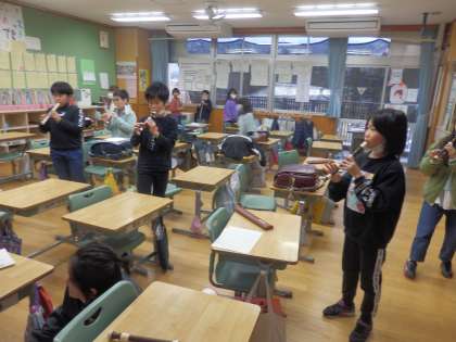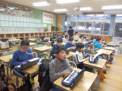 今日は課外鼓笛です。鍵盤ハーモニカ、リコーダー、キーボード&ベルリラの様子です。