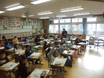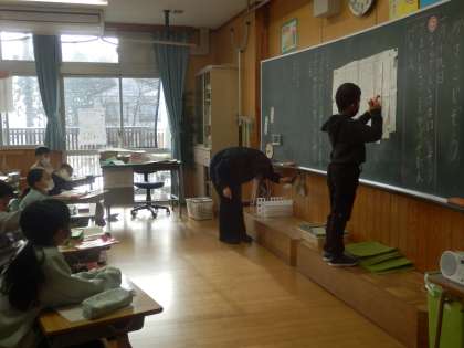 1/19 なぜじいさまは地蔵様にかさこをかぶせた? 公開日 2023/01/19 更新日 2023/01/19 教育活動 2年生は国語の授業でした。「かさじぞう」の続きです。「なぜ、じいさまはおじぞうさまにかさこをかぶせたんだろう」という問いの答えとなる部分を文中から探して線を引いていました。物語の内容を理解しないとできない課題ですが、子ども達はしっっっかり読み取れていました。 いいね(0)