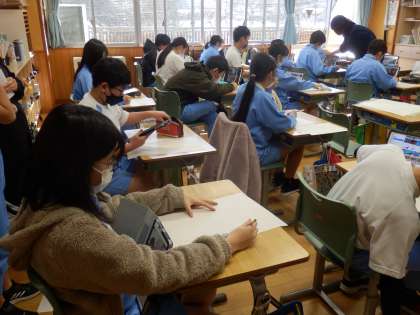 1/19 鼓笛をしているときの私 公開日 2023/01/19 更新日 2023/01/19 教育活動 6年生の4時間目は図工の授業でした。彩色版画の単元で、鼓笛で担当した楽器を持った自分を版画で描きます。タブレットで自分の写真を出して、下書きを書いていました。 いいね(0)