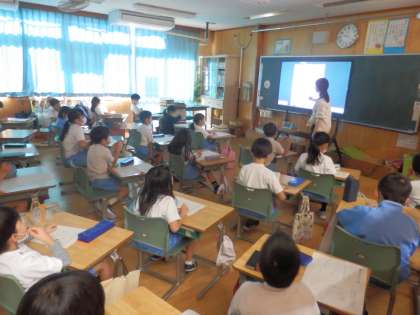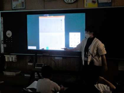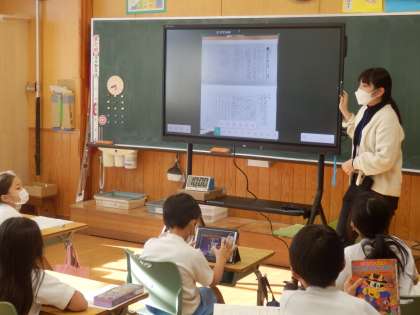 1/20 答え合わせも電子黒板で 公開日 2023/01/20 更新日 2023/01/20 教育活動 2年生は国語の授業でした。学習プリントの答え合わせを電子黒板を使って行っていました。電子黒板に問題用紙を表示させ、そこに担任の先生が大事なところに線を引いたりしながら、答えを書き込んでいきます。(子ども達が「明るくて見えない」ということで、写真が暗くなっています) いいね(0)