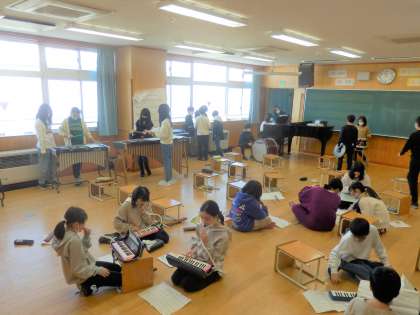1/20 パートごとで練習 公開日 2023/01/20 更新日 2023/01/20 教育活動 5年生は音楽の授業でした。有名な「威風堂々」をいろいろな楽器のパートに分かれて練習をしていました。みんなで合わせて演奏するのが楽しみです。 いいね(0)