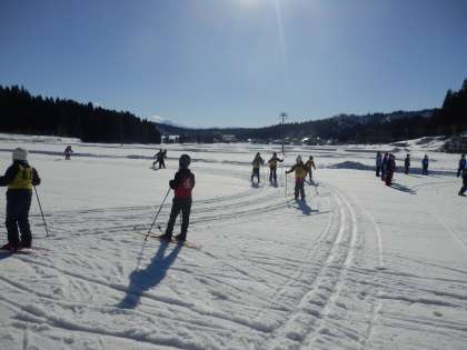 5,6年生は午後から欠之上に行ってきました。昨日までの天気予報では雪でしたが、ご覧のとおり見事な快晴。子ども達はウインドブレーカーを脱いで、体操着で滑りました。中には半袖の人も!