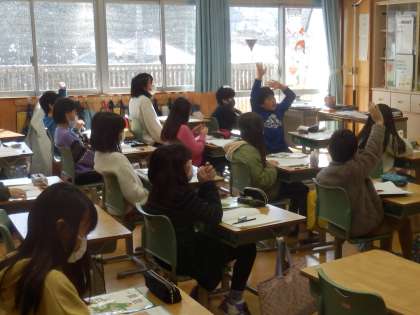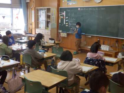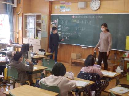 1/23 帯分数の計算 公開日 2023/01/23 更新日 2023/01/23 教育活動 4年生の算数の授業でした。帯分数同士の引き算です。前の授業で整数は整数、分数は分数で計算をするという考えが出されましたが、今日の問題は3 2/5−1 3/5で分数同士だけでは計算ができない式です。どうやって計算をするか考えを発表していました。 いいね(0)