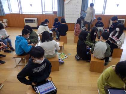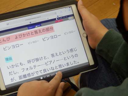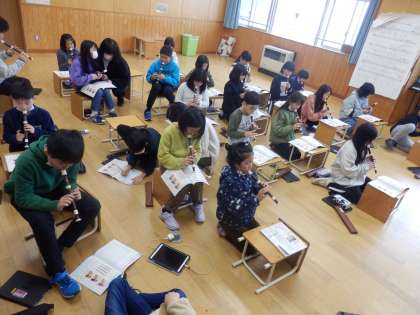 1/24 ピンヨローをどう歌う? 公開日 2023/01/24 更新日 2023/01/24 教育活動 4年生は音楽の授業でした。「とんび」という歌のピンヨローという掛け合いの部分について感じたことやどう歌ったらよいか考えをiPadで交流し、班ごとでの歌のテストでどう歌うか話し合っていました。その後、「オーラ リー」という曲のリコーダー練習をしていました。 いいね(0)