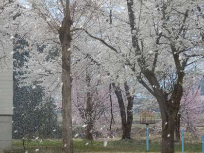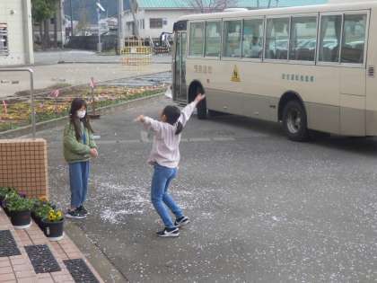 4/12 桜吹雪の中 公開日 2023/04/12 更新日 2023/04/12 教育活動 急な冷え込みと強風で満開だった桜の花もまるで雪が降っているかのように散っていました。桜吹雪が舞う中、5年生の子ども達が桜の花びらを集めてはまき、集めてはまきを繰り返していました。 いいね(0)
