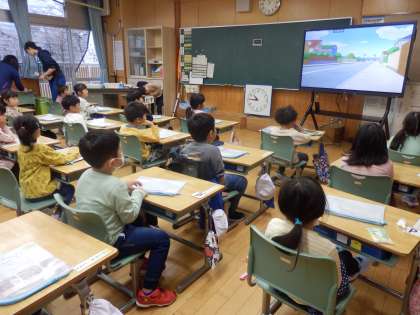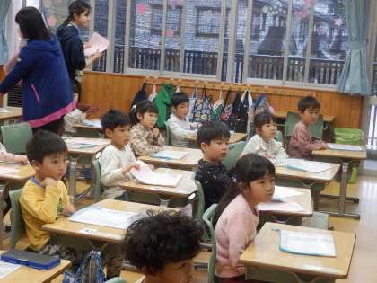 4/12 帰りの会で 公開日 2023/04/12 更新日 2023/04/12 教育活動 1年生は帰りの会をしていました。担任の先生が配り物を配っている間、子ども達はテレビで動画を見ていました。4月の初めは配付物がたくさんあるので、配るのに時間がかかりますが、子ども達は静かに待つことができました。 いいね(0)