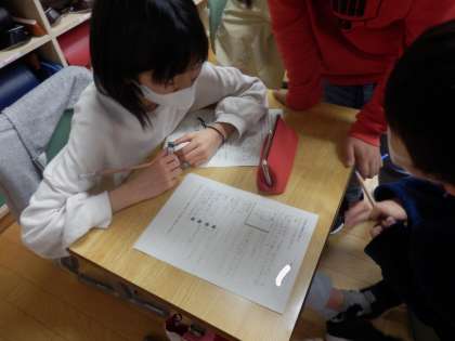 4/12 キャリアパスポート 公開日 2023/04/12 更新日 2023/04/12 教育活動 5年生は「今年1年のめあて」や「将来の夢」、「学習・生活・家庭でどんな自分になりたいか」についてプリントに記入していました。書き終わった人から先生の点検を受け、『キャリアパスポート』に綴じていきます。「将来の夢」には、バスケットの日本代表、第九、美容師、漁師などいろいろな目標が書かれていました。 いいね(0)