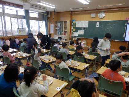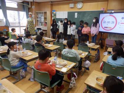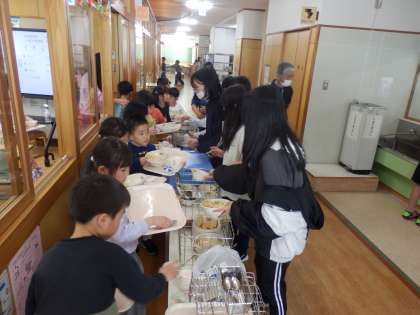 4/13 1年生に後片付けのやり方も 公開日 2023/04/13 更新日 2023/04/13 教育活動 後片付けのやり方や牛乳パックのたたみ方も5,6年生が教えてくれました。「給食どうだった?」と聞くと、笑顔で「おいしかった!」と言ってくれる子がたくさんいました。 いいね(0)