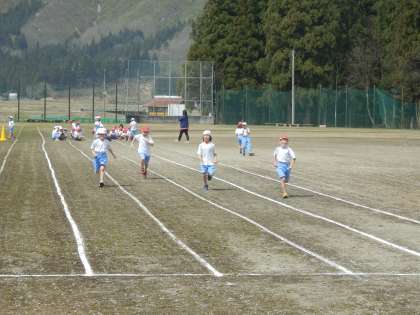 1,2年生は合同で体育の授業でした。50m走のタイム計測をしていました。残念ながら走っている姿は1組分しか撮れませんでした。低学年の子ども達にとっては、まずは50mを顔を上げてまっすぐ走ることが大切です。