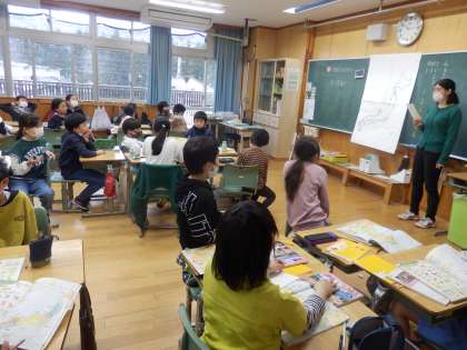 4/18 都道府県クイズを作ろう 公開日 2023/04/18 更新日 2023/04/18 教育活動 4年生は社会の授業でした。1人1問ずつ、都道府県クイズを作っていました。まずは好きな都道府県1つの形を紙に写します。そして、その県についてのヒントを3つ考えます。 例えば「南部鉄器が有名です。」「胆沢ダムがあります」・・・この県、分かりますでしょうか。(ある児童が考えたヒントです) いいね(0)