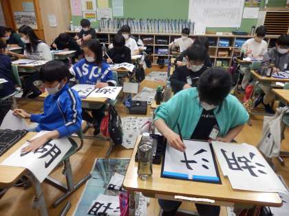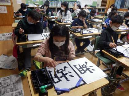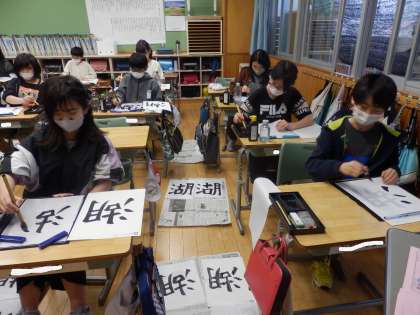 4/18 湖 公開日 2023/04/18 更新日 2023/04/18 教育活動 6年生の5時間目は書写の授業でした。「湖」という字を書きました。書き上げた作品のうちどれがいいのか友達に選んでもらったり、両手で持って悩んだりしながら、1枚を提出しました。 いいね(0)