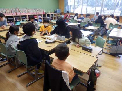 4/20 きずな班出会いの集い 公開日 2023/04/20 更新日 2023/04/20 教育活動 4時間目にきずな班の出会いの集いを行いました。全校児童が全部で18班の縦割り班に別れ、清掃、花の丘活動、ダンス大会などに取り組みます。今日は「出会いの集い」として自己紹介やめあて決め、簡単なゲームを行いました。高学年の子が低学年の目線に合わせてお話ししているところがいいですね。 いいね(0)