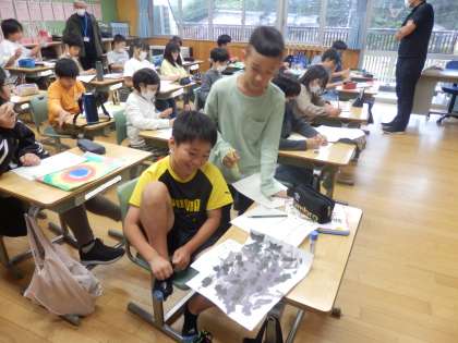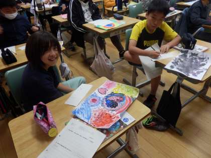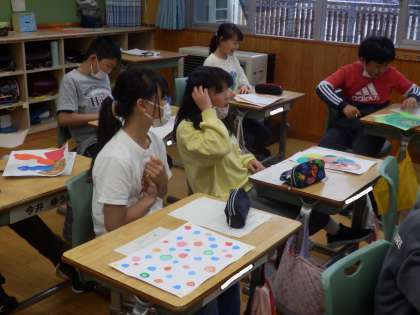 5/23 友達の作品のよさをあげる 公開日 2023/05/23 更新日 2023/05/23 教育活動 5年生の2時間目は図工の授業でした。「心のもよう」の作品が全員できあがったので、振り返りとお互いの絵の鑑賞をしていました。自分が工夫したところや友達の作品のよいところをプリントに記入していました。子ども達はタイトルを考えることに苦労していました。 いいね(0)