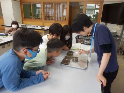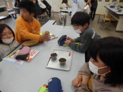 5/23 インゲン豆の発芽状況は? 公開日 2023/05/23 更新日 2023/05/23 教育活動 5年生の4時間目は理科の授業でした。前の授業でカップにインゲン豆を植えましたが、その発芽状況を確認していました。ある班は土ではなく、水を含ませたガーゼにインゲン豆を置きましたが、それでも発芽していました。 いいね(0)