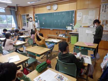 5/24 電話のあらしがやってきた 公開日 2023/05/24 更新日 2023/05/24 教育活動 4年生の3時間目は道徳の授業でした。家族のみんながお辞儀をしながら電話している様子を描いた「電話のあらしがやってきた」という教材を読んだり、電話している場面のロールプレイをしたりしながら礼儀やマナーを守ることの大切さについて考えました。 いいね(0)