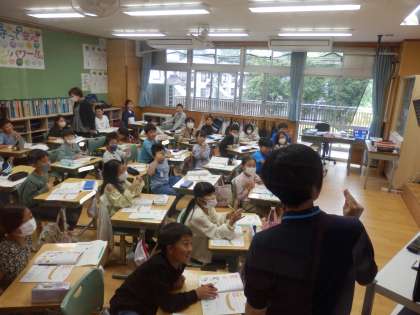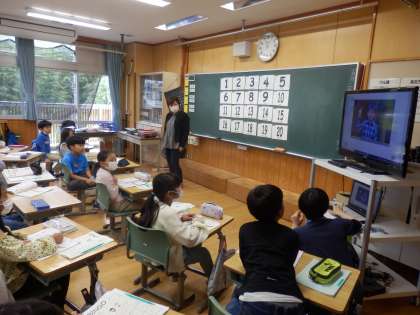 3年生の3時間目は国際科の授業でした。1から20までの数字の英語での言い方を学習しました。その後、いろいろな国の子が1から10までの数字を母国語で言う動画を見て、誰がどこの国の人なのか考えました。子ども達はいろいろな国のことばに興味津々でした。