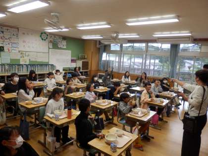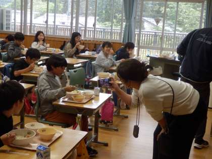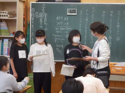 今日はFM雪国の「ランチ拝見」というコーナーが6年生教室から生放送で行われました。7人の代表の子がインタビューを受けました。7人ともとてもハキハキと答えて6年生らしさを感じました。最後は、アナウンサーさんの「給食どうですか?」の問いかけに「おいしいで〜す!!」と全員で叫んでいました。