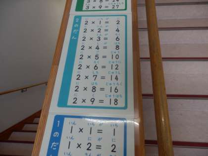 5/24 九九ストリート開通 公開日 2023/05/24 更新日 2023/05/24 教育活動 4年生教室側の階段の手すりに九九の表が貼られました。4年生だけでなく、他の学年も活用してほしいです。 いいね(0)
