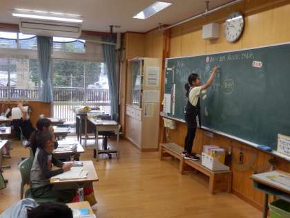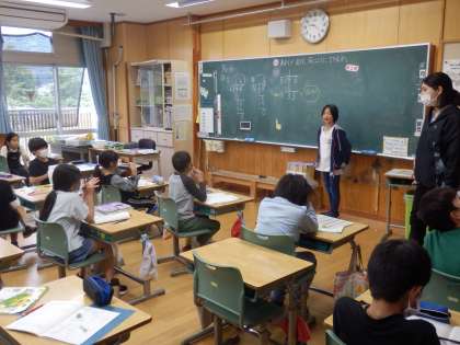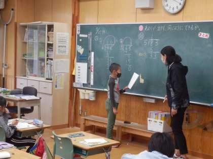 5/25 あまりが出る割り算 公開日 2023/05/25 更新日 2023/05/25 教育活動 4年生の1時間目は算数の授業でした。33÷5のようにあまりがでる割り算についての学習です。まずは問題に取り組んでみて、「ここで困っている」という子が意見を出します。それに対して、どういうやり方で解いたらよいか考えを出していました。 いいね(0)