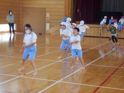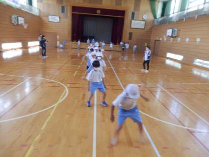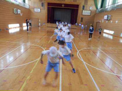 4年生の5時間目は体育の授業でした。体力テストの種目の1つ、反復横跳びの練習をしてました。何回か練習をして、本番の体力テストに臨みます。記録更新できるように頑張れ!
